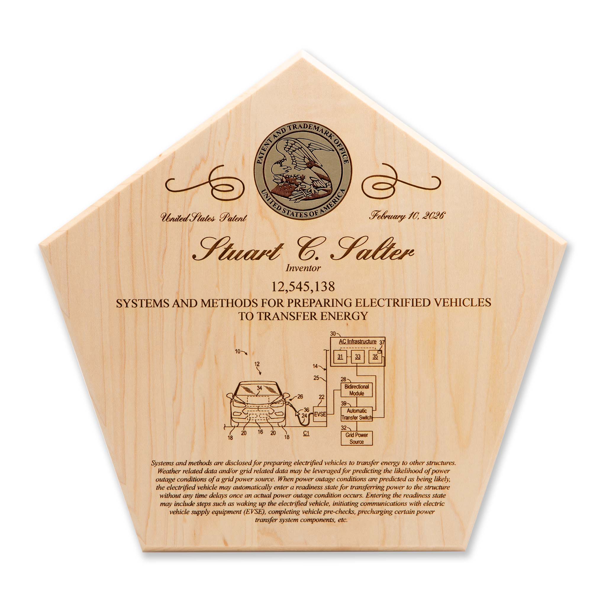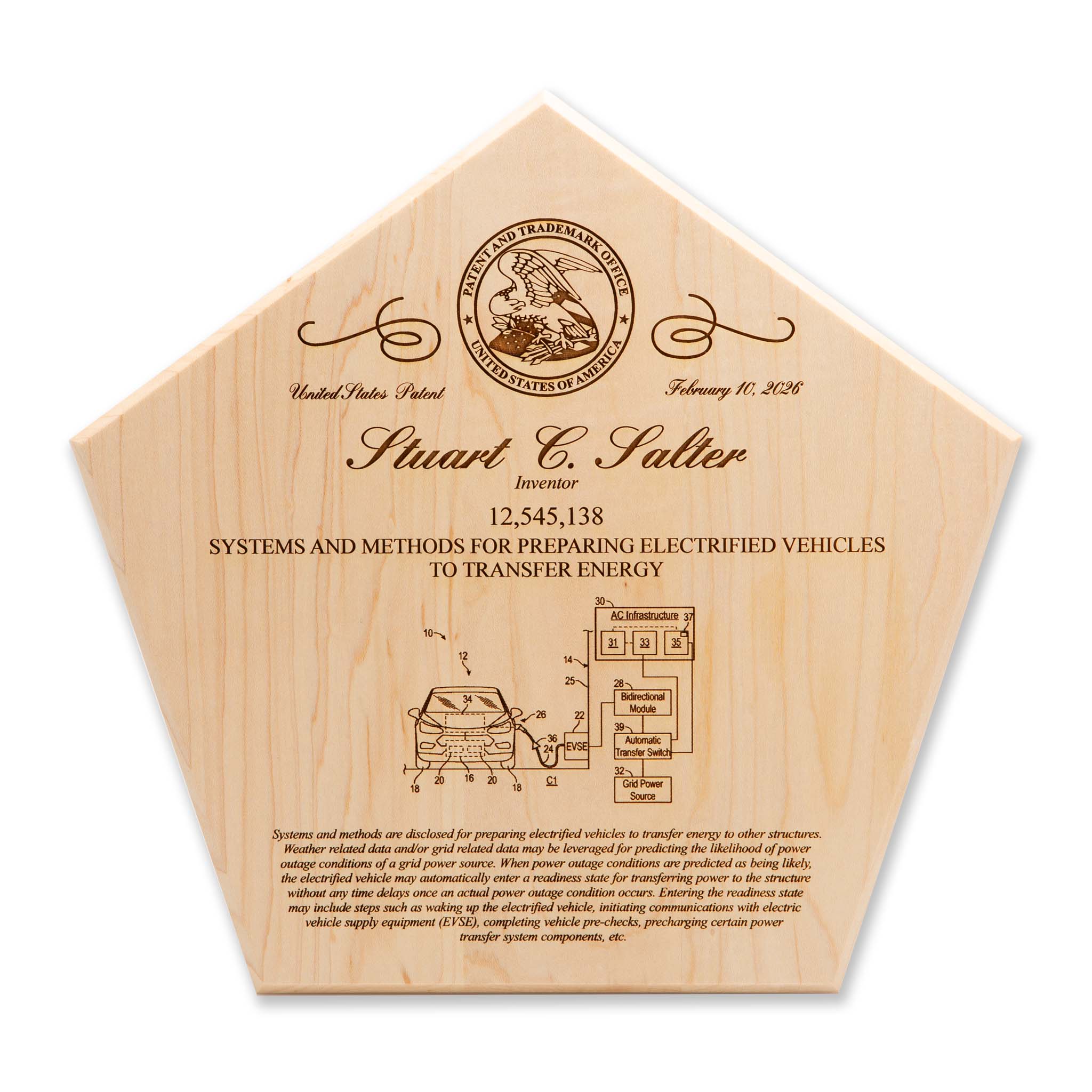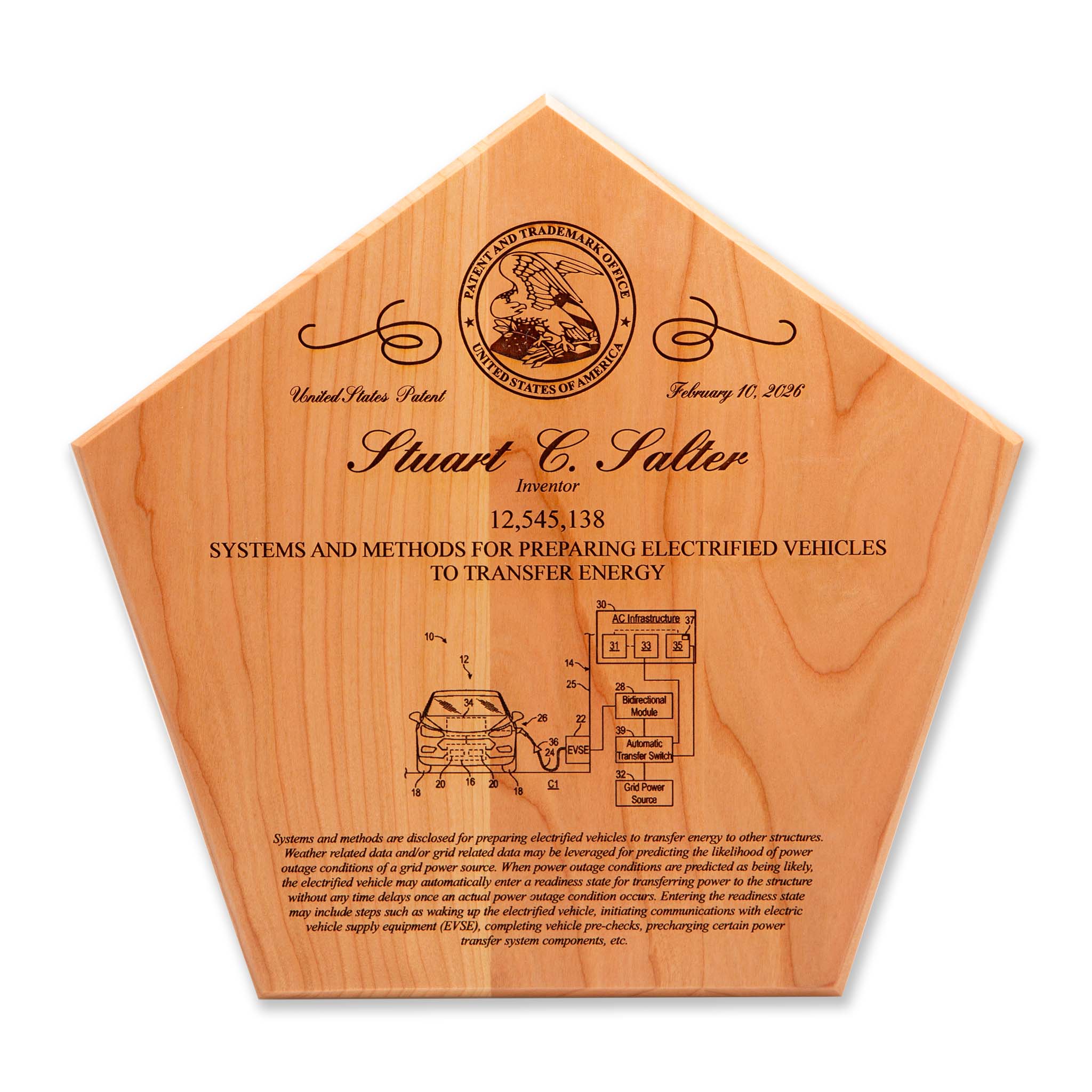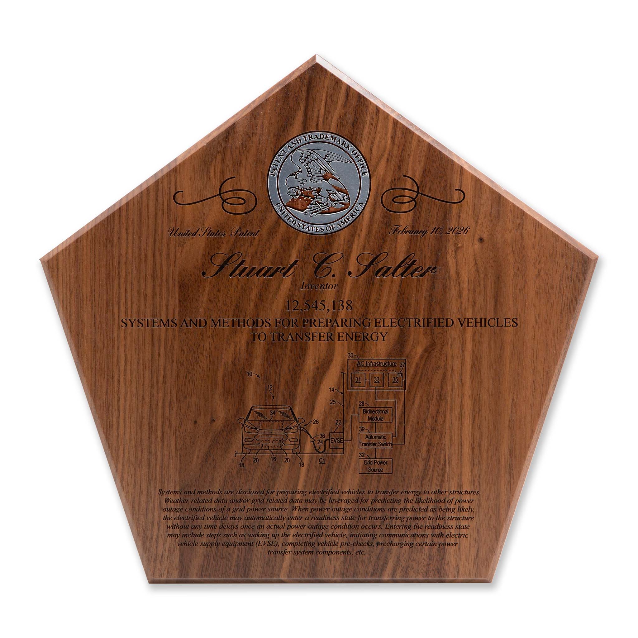 The Keystone Series™ pentagon patent plaque represents stability, accomplishment, and enduring innovation. Precision-crafted from solid walnut, cherry, or maple, this five-sided silhouette provides a distinctive alternative to traditional rectangular plaques while maintaining professional formality.