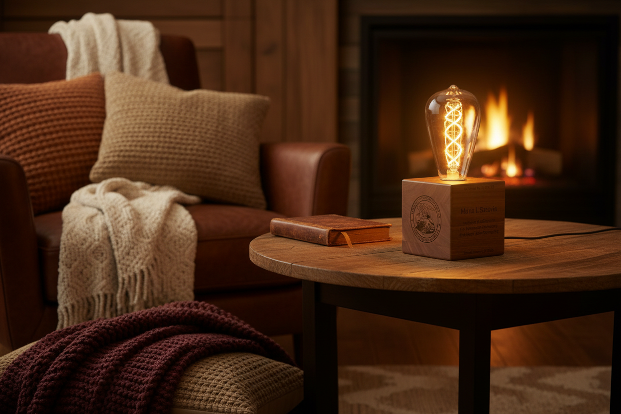 Emits a warm, ambient glow that enhances both the engraving and the surrounding space. -