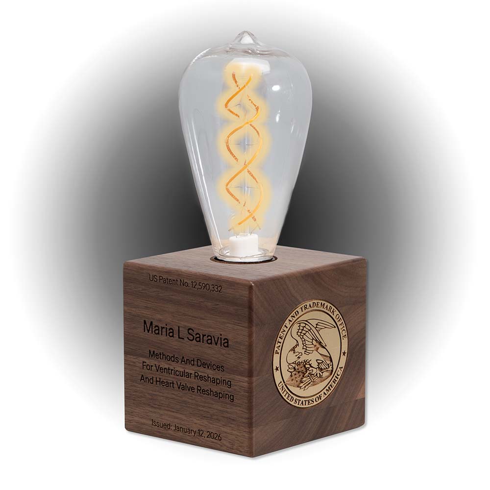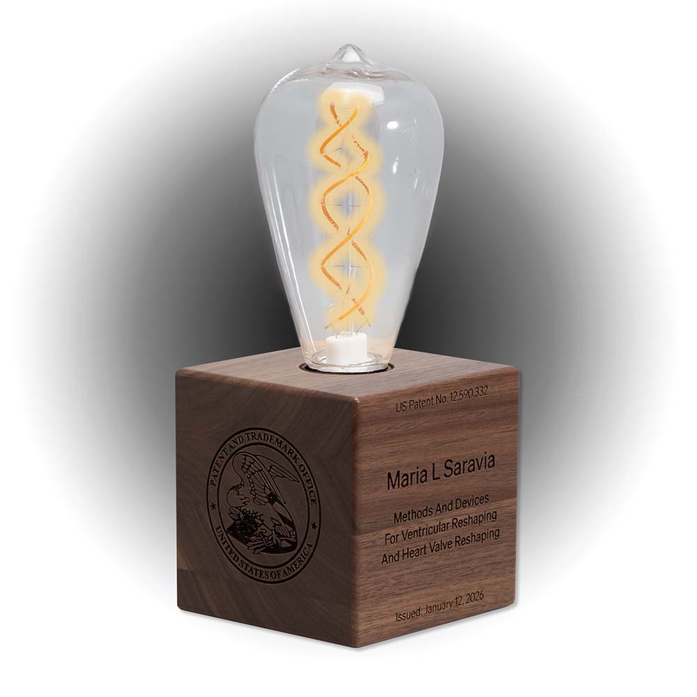 This solid walnut lighted patent cube is a striking and symbolic way to celebrate innovation. Handcrafted from premium maple and topped with a classic Edison-style bulb, this award brings a warm, ambient glow to the moment a patent becomes reality transforming achievement into a functional work of art.