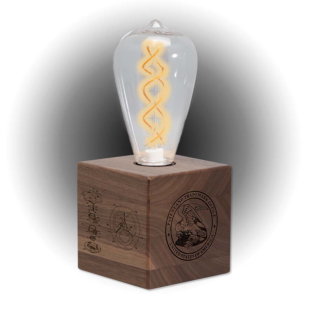 Illumination Series™ Solid Walnut Lighted Patent & Inventor Cube with USB Powered Edison Style Bulb